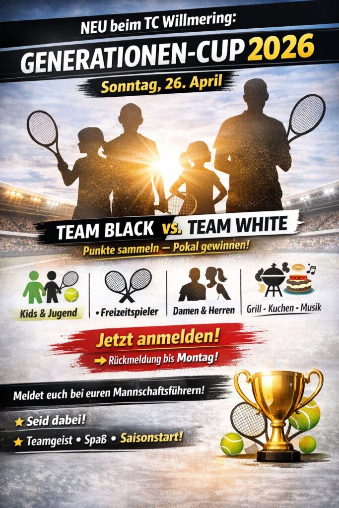 Zur Saisoneröffnung 2026 erwartet die Mitglieder des TC Willmering ein besonderes Highlight: Der erste Generationen-Cup bringt Spielerinnen und Spieler aller Alters- und Leistungsklassen in einem gemeinsamen Team-Wettbewerb zusammen.
